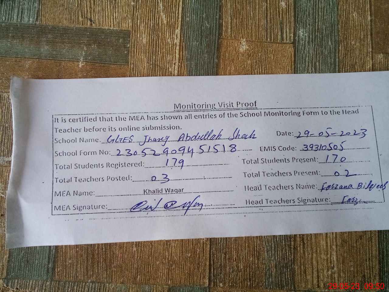 | Certified that this School was Inspected by the Undersigned MEA/DMO Today and the Information Stated Above is as Per Record. | |||||