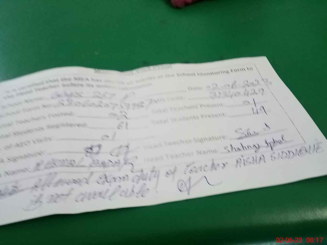 | Name: Sh**** Iq**** Designation: (School Headmaster's/Headmistress's) PST Phone/Cell Number: 03**** |
