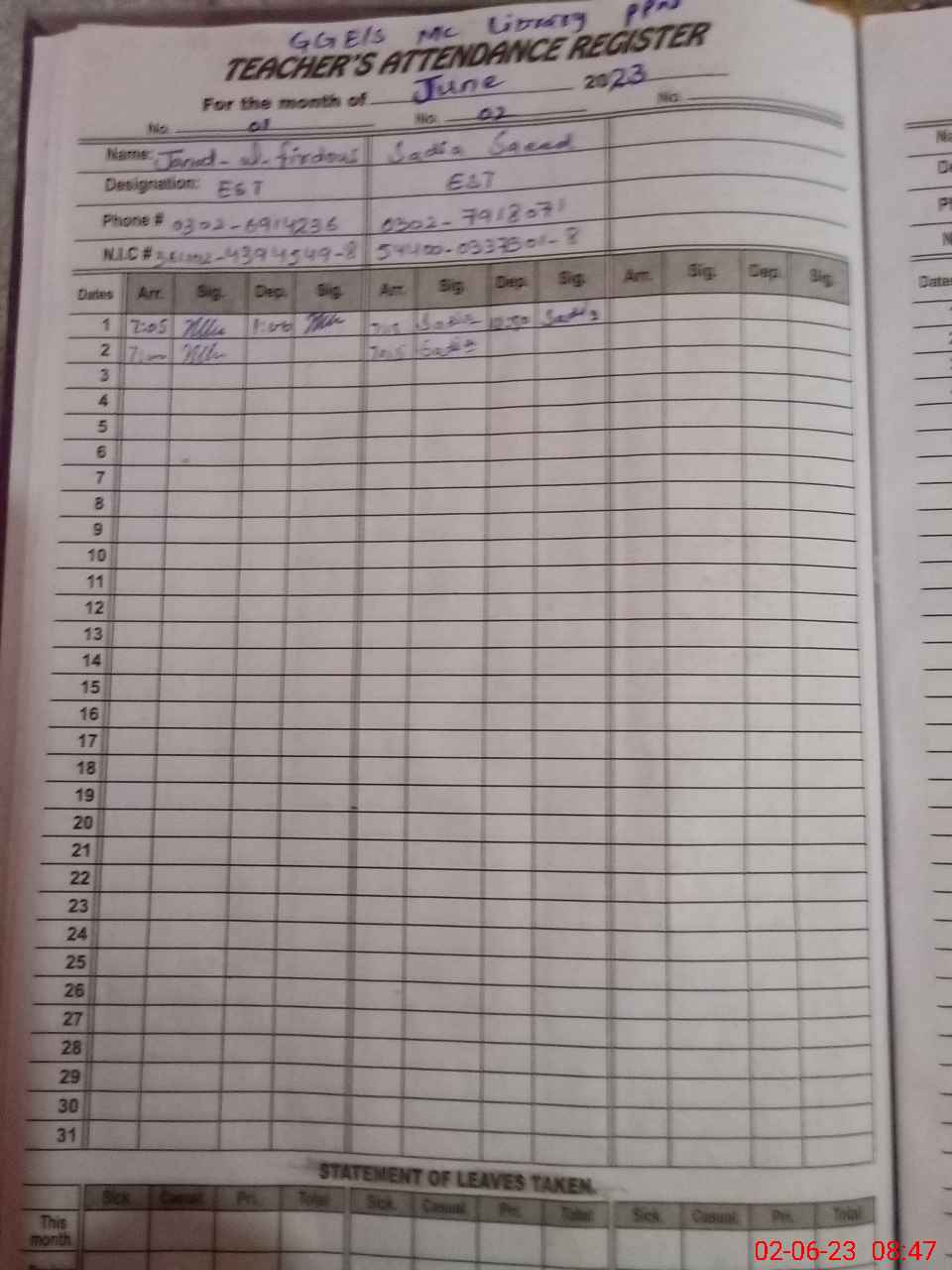 | Name: Hu**** Iq**** Designation: (School Headmaster's/Headmistress's) EST Phone/Cell Number: 03**** |