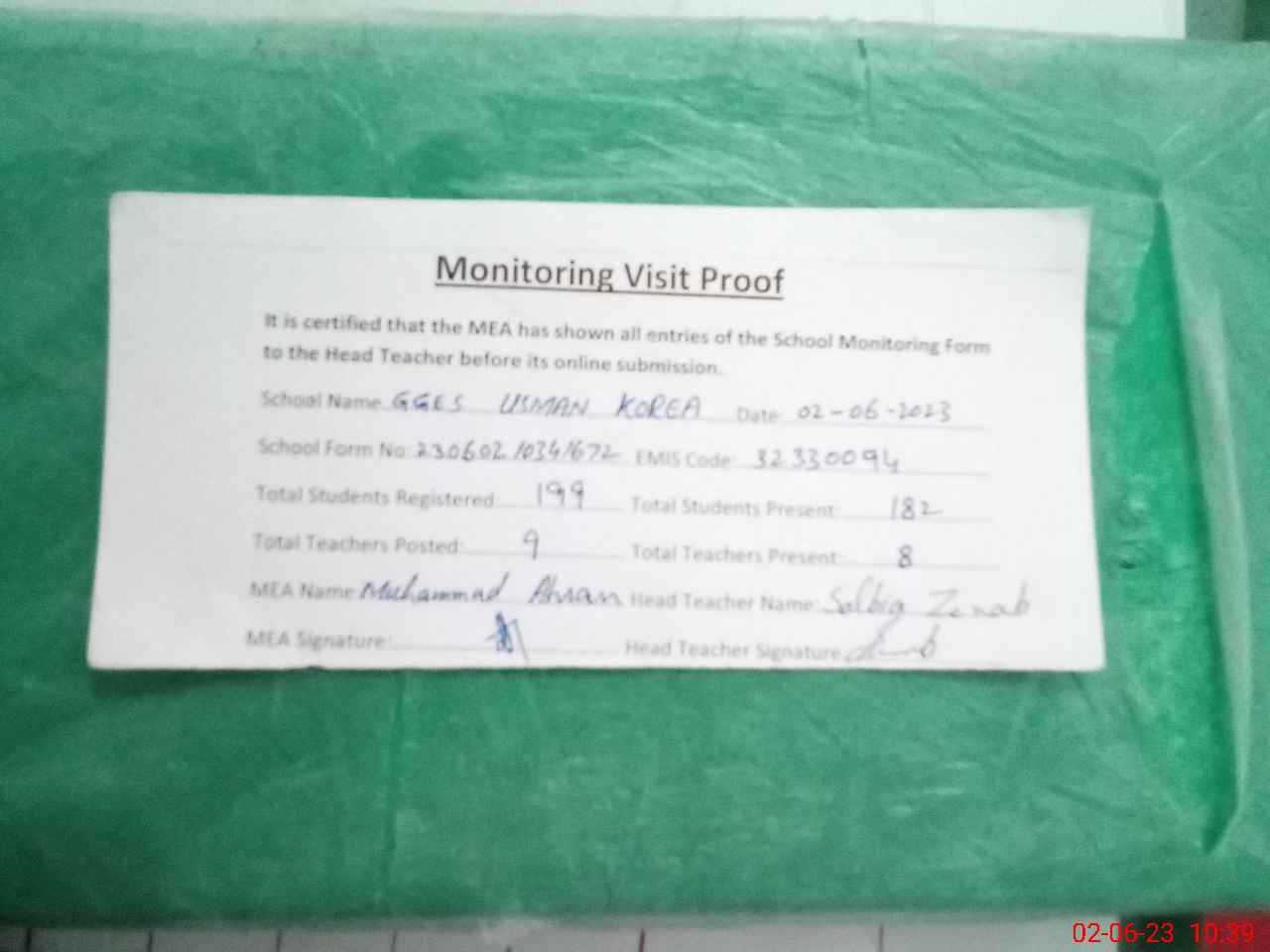 | EMIS Code: 32330094 | Name of School: GGES USMAN KORIA | |||