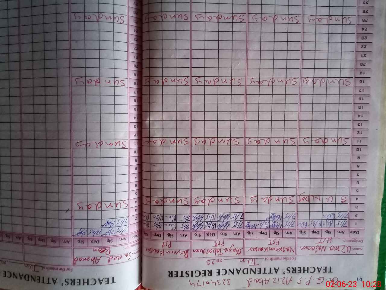| CNIC | Full Name | Designation | R/C | Absence During Last Calender Month |