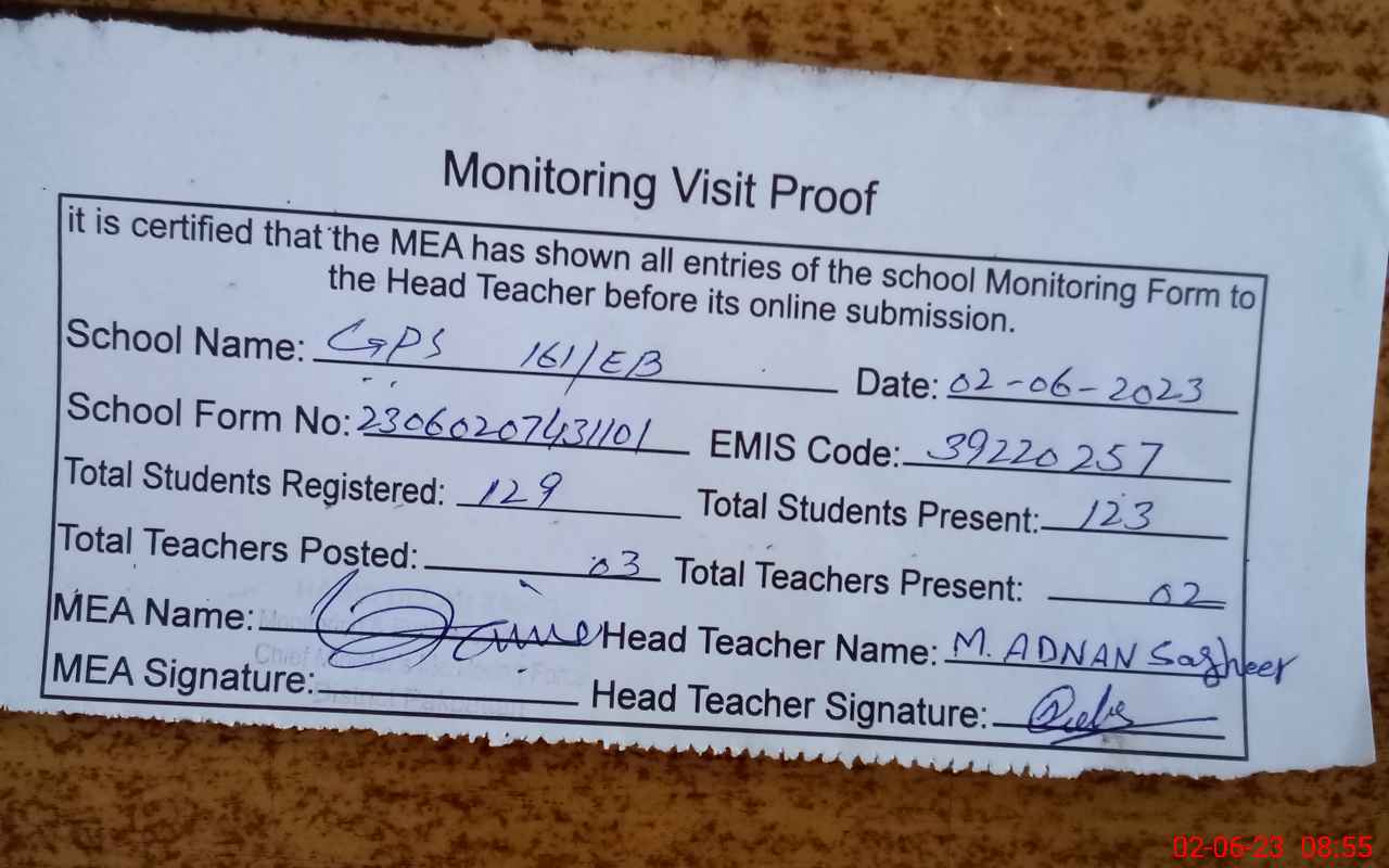 | EMIS Code: 39220257 | Name of School: GPS 161 EB | |||
