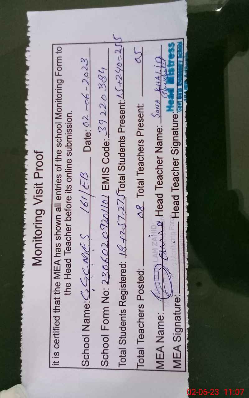 | EMIS Code: 39220384 | Name of School: GGCMES 161 EB ARIFWALA | |||