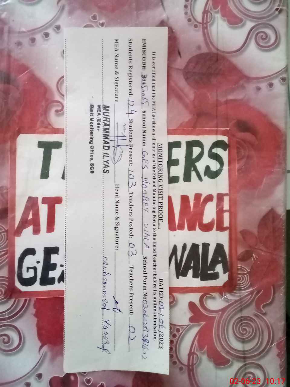 | Attendance Register | Head Teacher | MEA with School | Visit Proof |