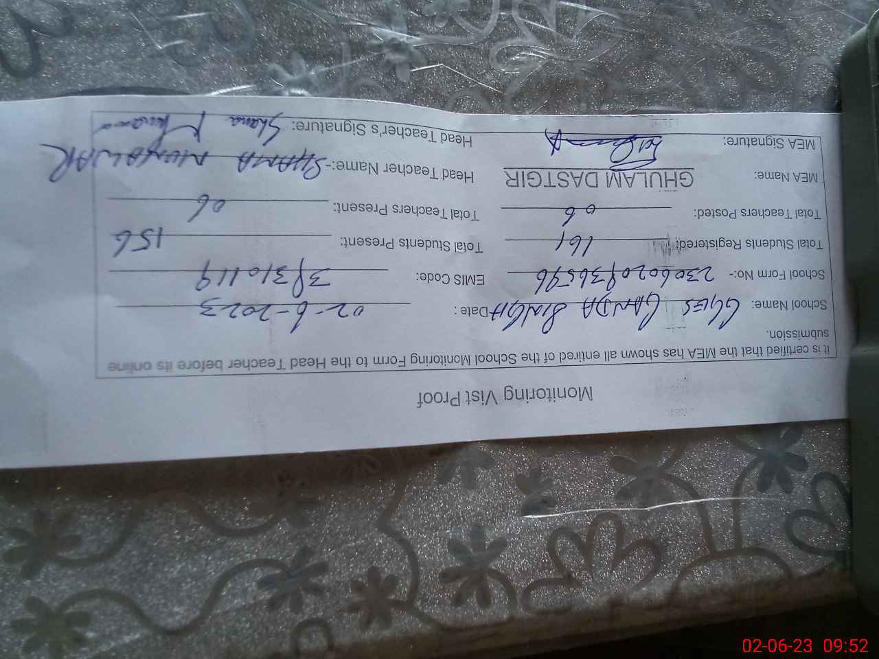 | Name: SH**** MU**** Designation: (School Headmaster's/Headmistress's) SSE ENG Phone/Cell Number: 03**** |