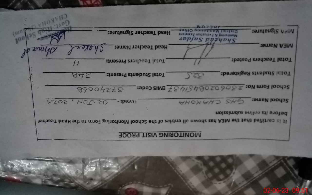 | EMIS Code: 37240068 | Name of School: GHS CHAKOHA | |||