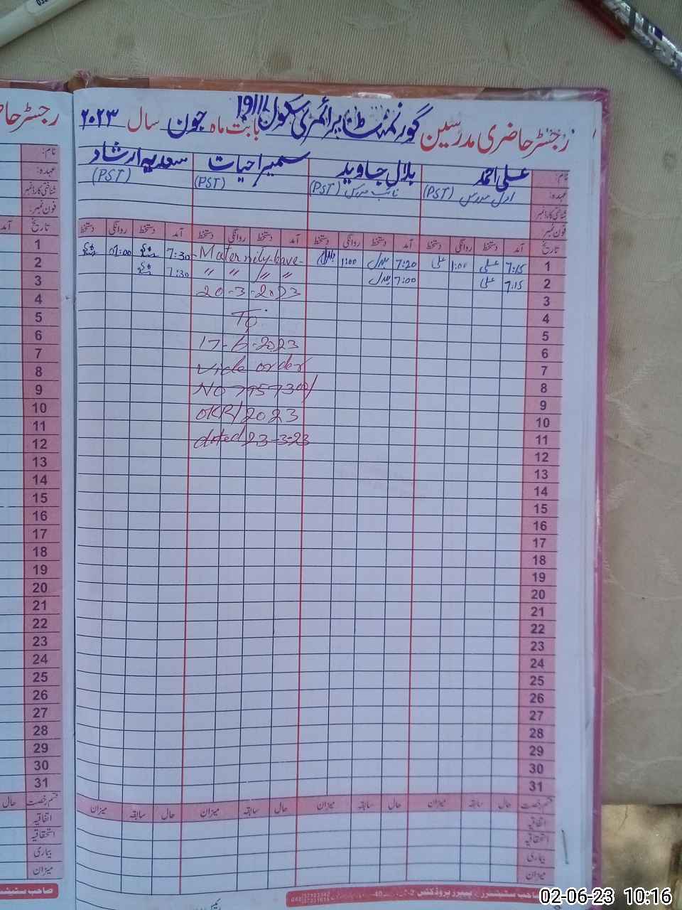| Name: Ha**** Kh**** Designation: (School Headmaster's/Headmistress's) PST Phone/Cell Number: 03**** |