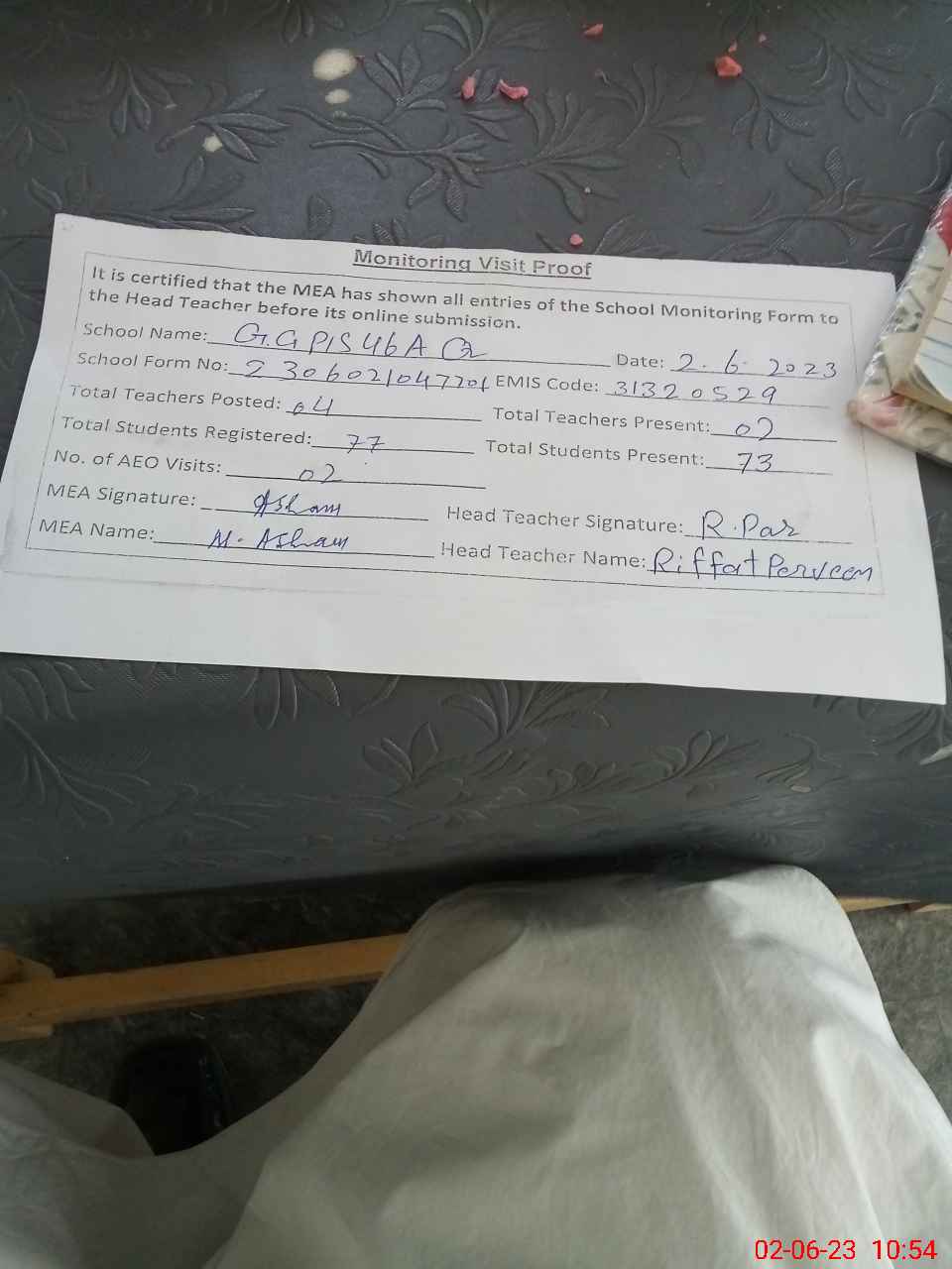 | Attendance Register | Head Teacher | MEA with School | Visit Proof |