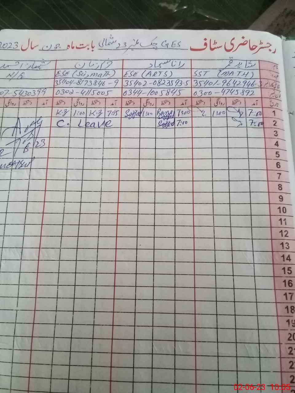 | Name: Sh**** Qa**** Designation: (School Headmaster's/Headmistress's) SST Phone/Cell Number: 03**** |