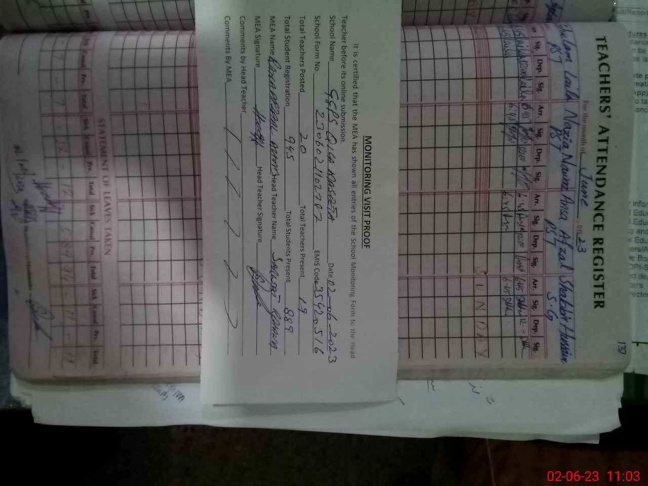 | Attendance Register | Head Teacher | MEA with School | Visit Proof |
