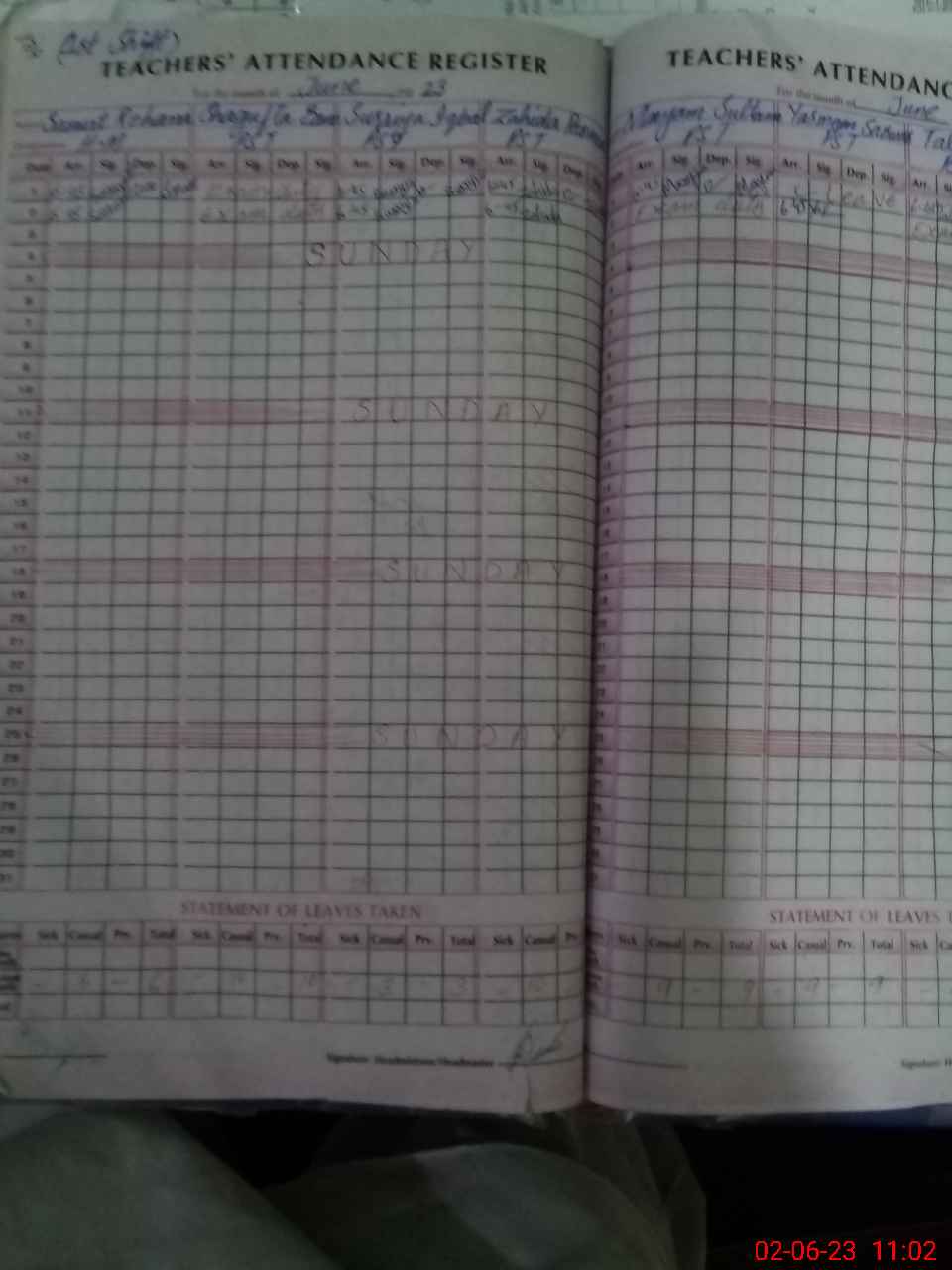 | 35**** | Sh**** Ba**** | PST | Regular | 2 | 6 | 0 | 0 | 0 | 0 | 0 | 0 | 2 | Exam Duty |
