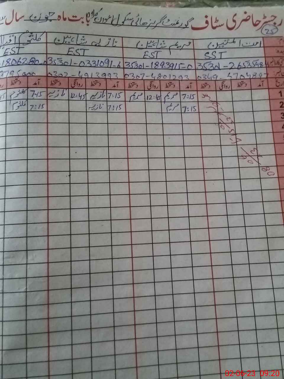 | Name: UM**** ULMA**** Designation: (School Headmaster's/Headmistress's) S.S.T.(Arts) Phone/Cell Number: 03**** |