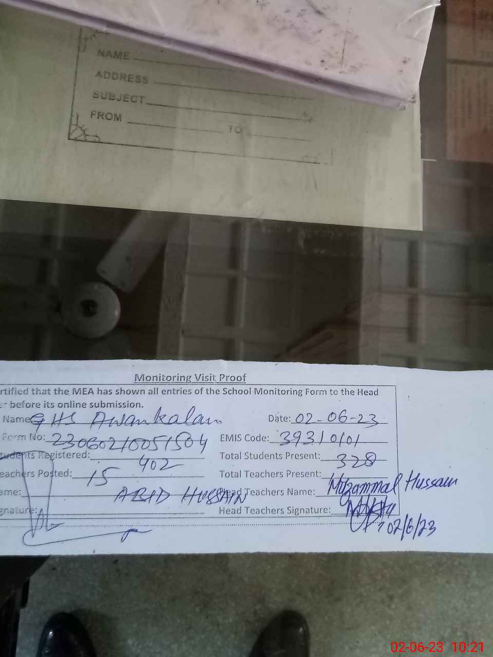 | Attendance Register | Head Teacher | MEA with School | Visit Proof |