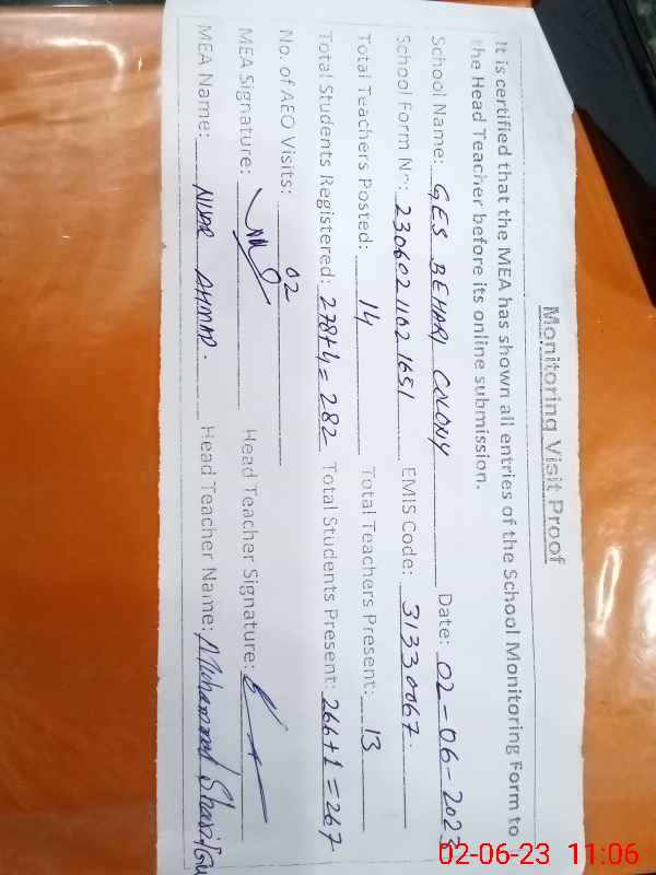 | Attendance Register | Head Teacher | MEA with School | Visit Proof |