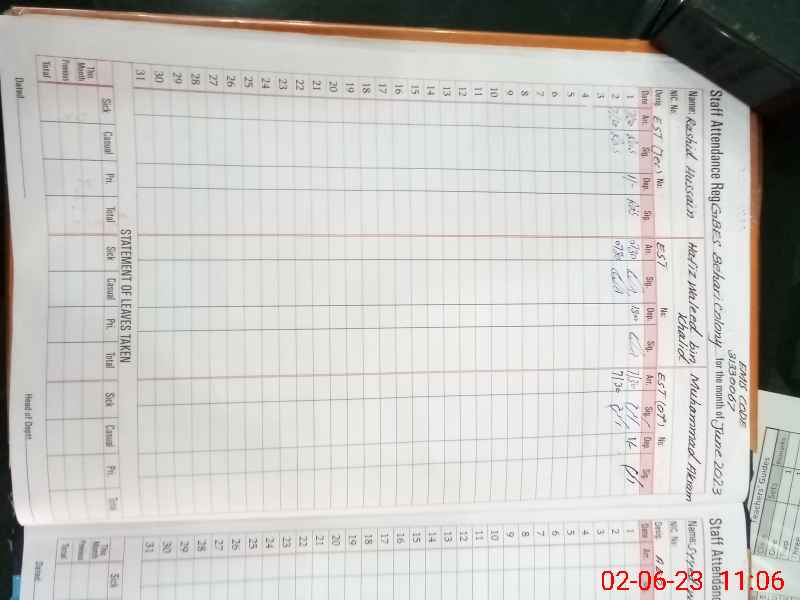 | CNIC | Full Name | Designation | R/C | Absence During Last Calender Month |