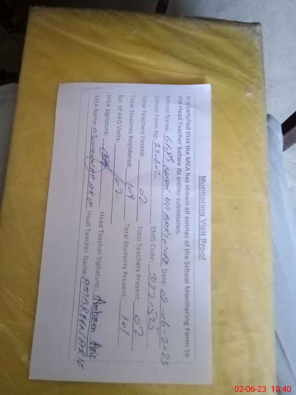 | Certified that this School was Inspected by the Undersigned MEA/DMO Today and the Information Stated Above is as Per Record. | |||||