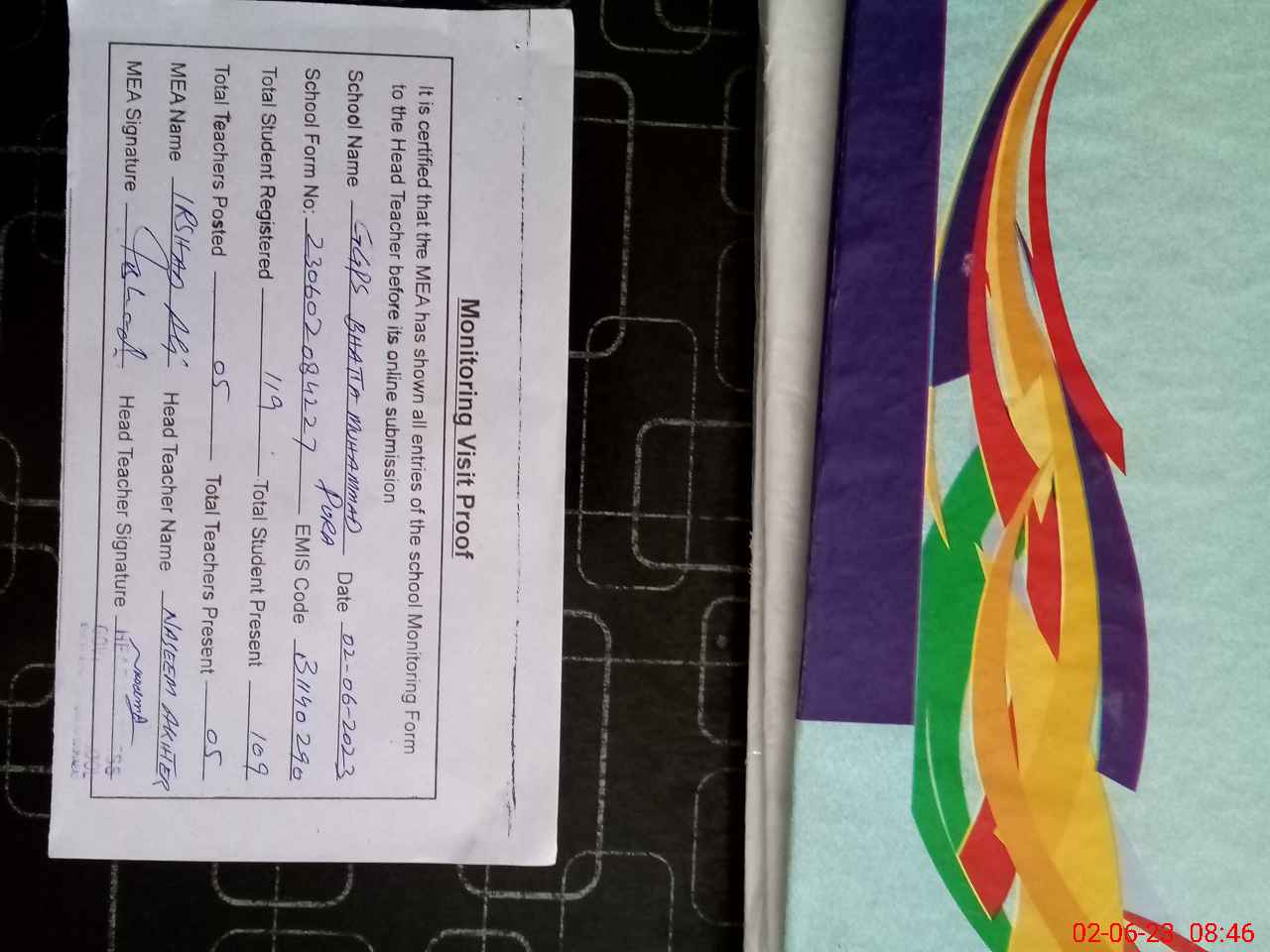 | Attendance Register | Head Teacher | MEA with School | Visit Proof |