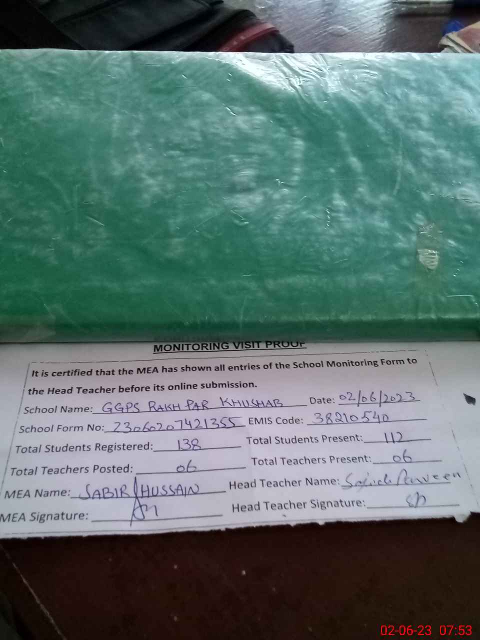 | Attendance Register | Head Teacher | MEA with School | Visit Proof |