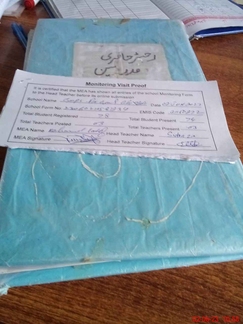 | Attendance Register | Head Teacher | MEA with School | Visit Proof |