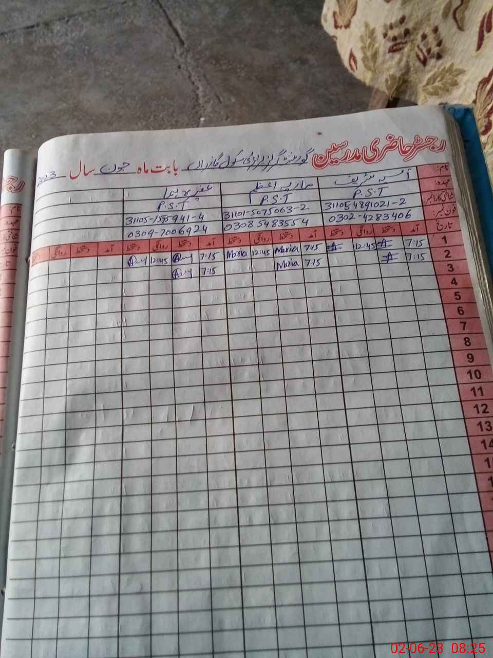 | Name: AS**** SH**** Designation: (School Headmaster's/Headmistress's) PST Phone/Cell Number: 03**** |