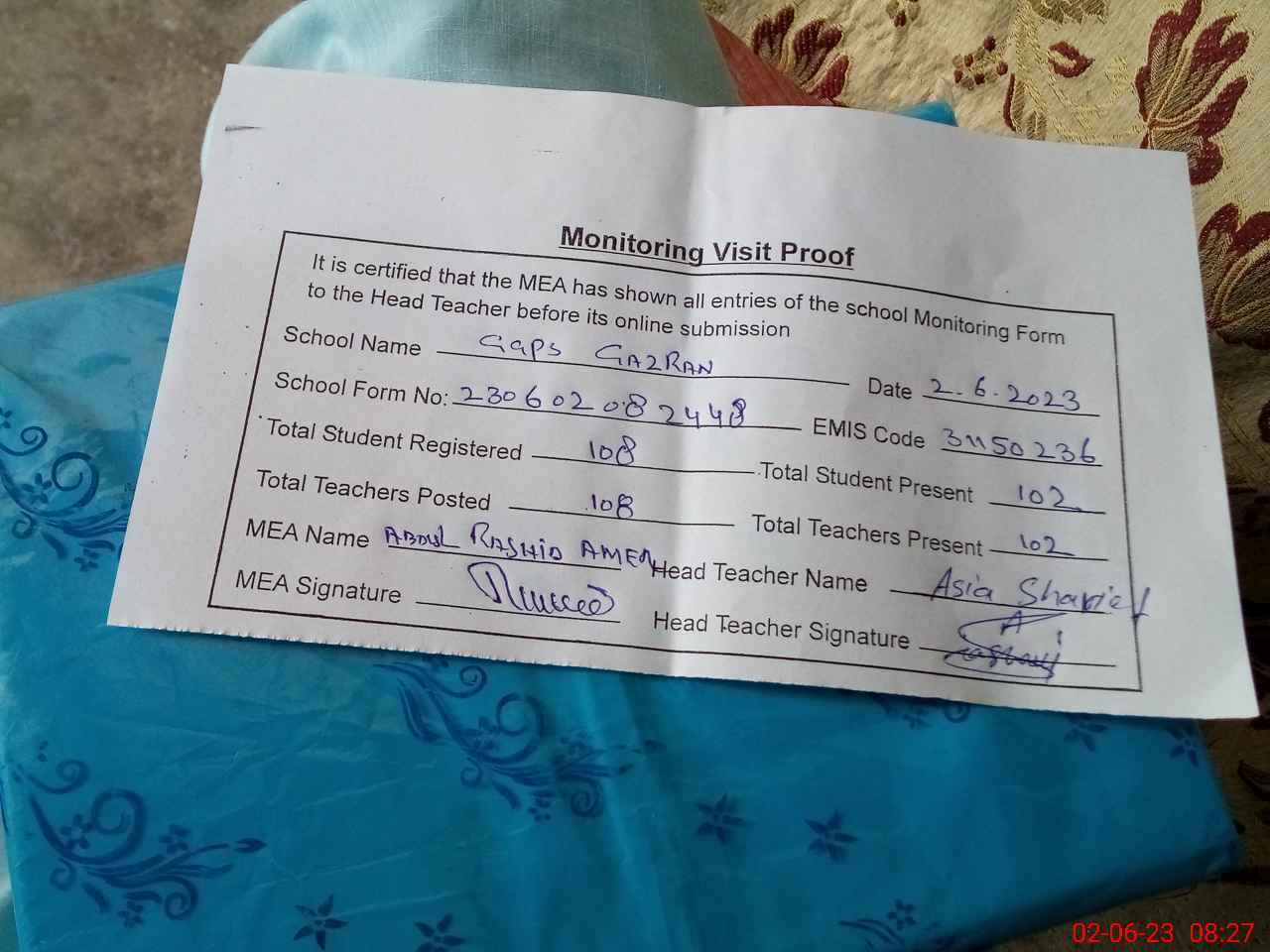 | EMIS Code: 31150236 | Name of School: GGPS GAZRAN | |||