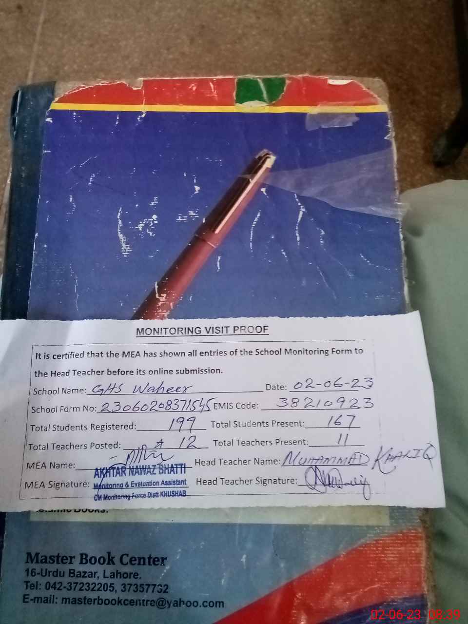 | Attendance Register | Head Teacher | MEA with School | Visit Proof |