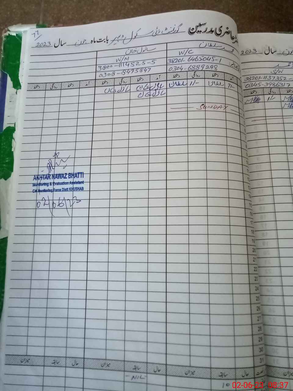 | CNIC | Full Name | Designation | R/C | Absence During Last Calender Month |