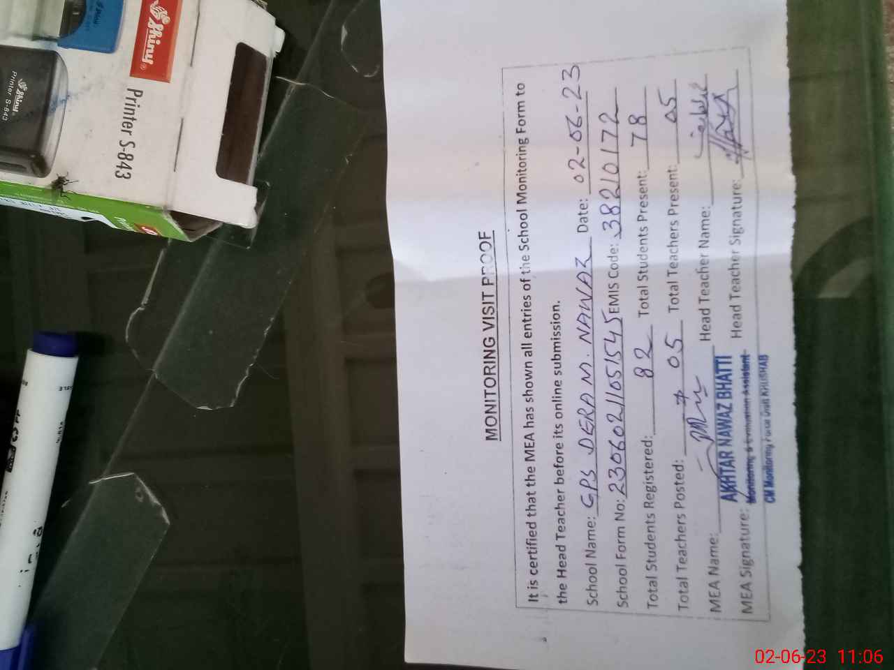 | Certified that this School was Inspected by the Undersigned MEA/DMO Today and the Information Stated Above is as Per Record. | |||||