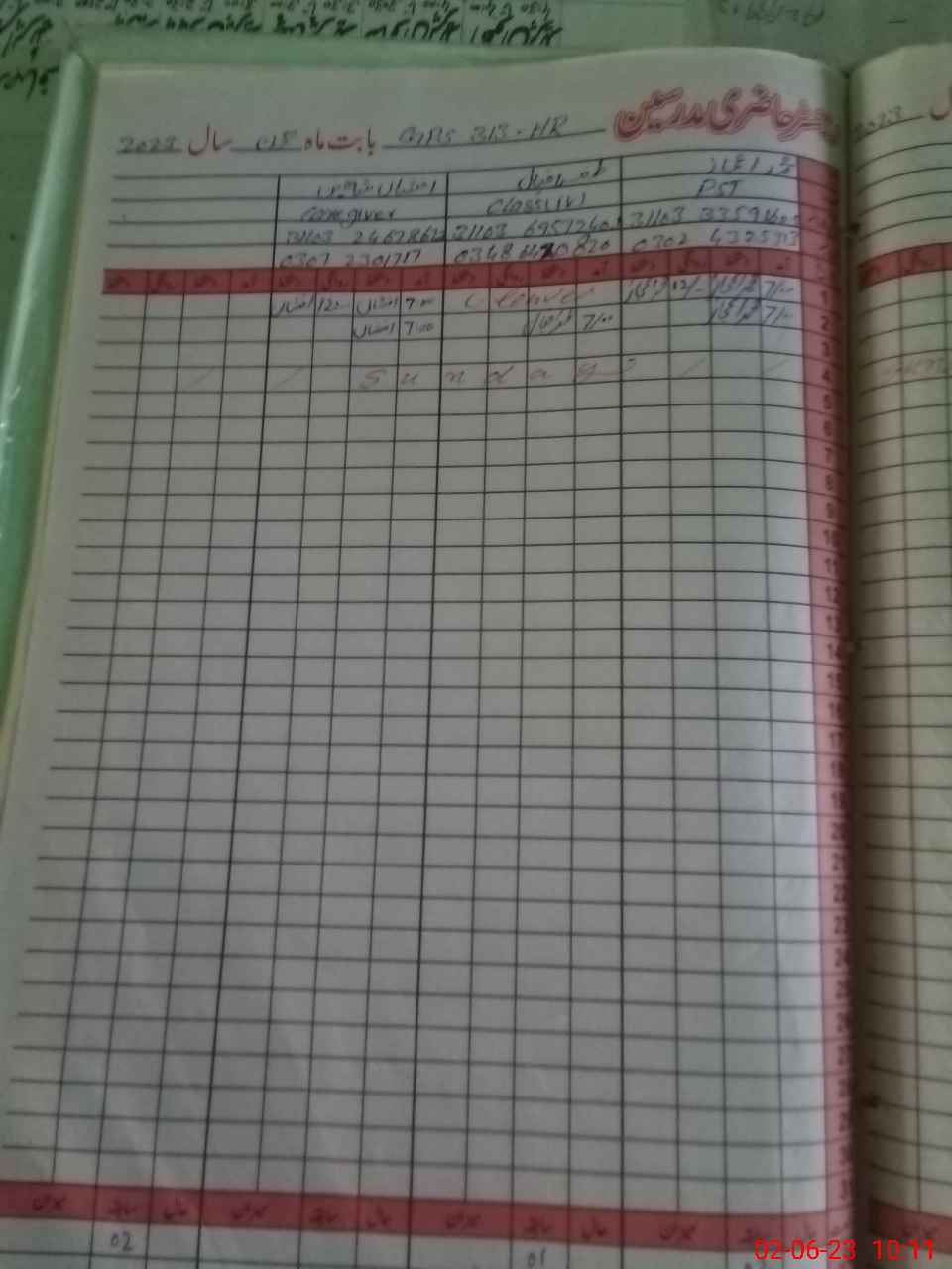 | CNIC | Full Name | Designation | R/C | Absence During Last Calender Month |
