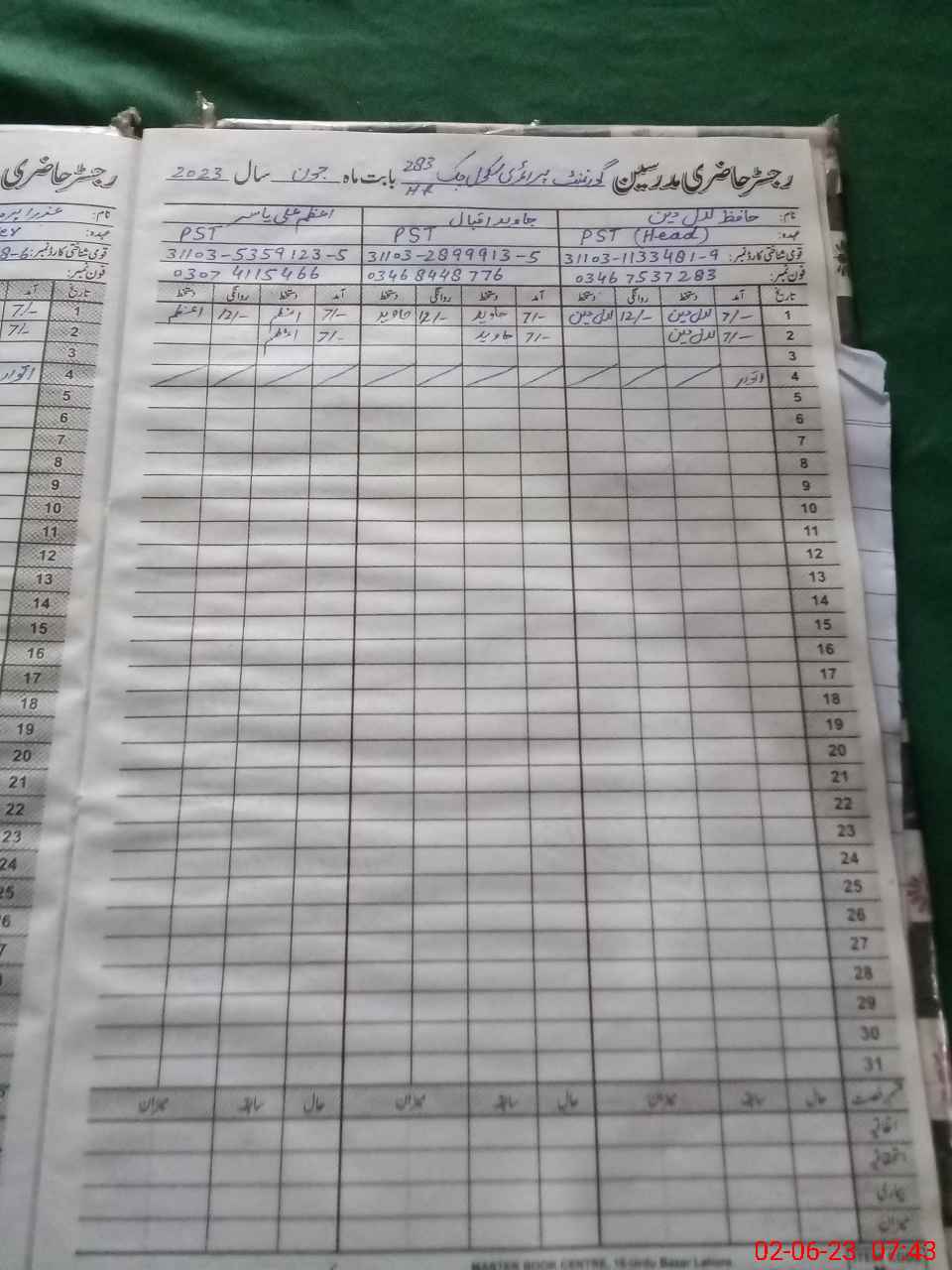 | Name: Az**** Al**** Ya**** Designation: (School Headmaster's/Headmistress's) PST Phone/Cell Number: 03**** |