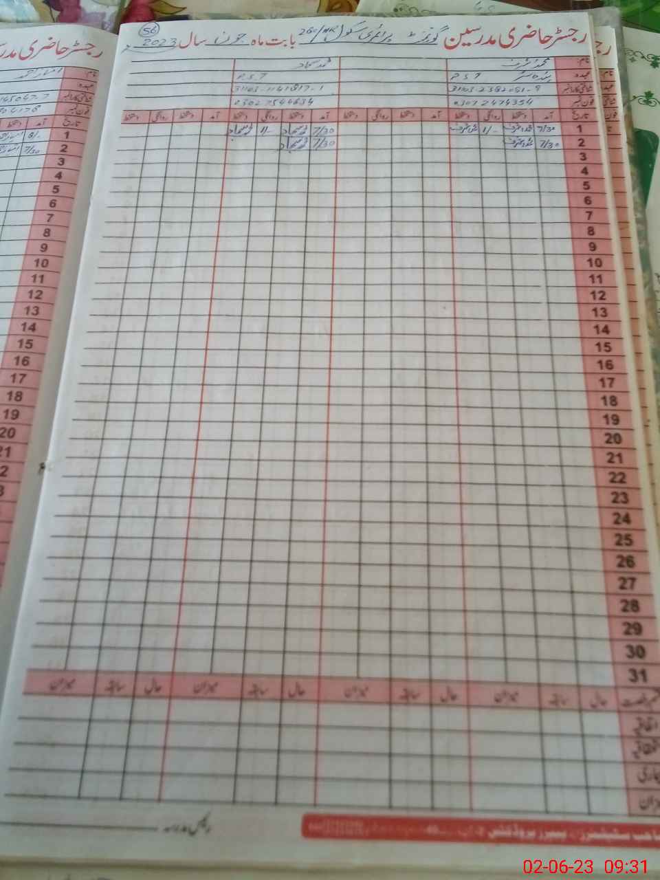 | Name: M.**** Designation: (School Headmaster's/Headmistress's) PTC/JV Phone/Cell Number: 03**** |
