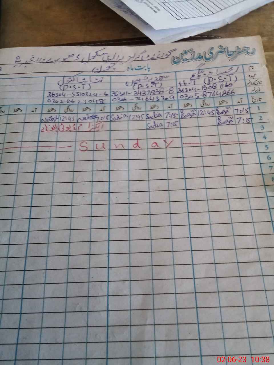 | Name: RU**** BE**** Designation: (School Headmaster's/Headmistress's) HEADMISTRESS Phone/Cell Number: 03**** |