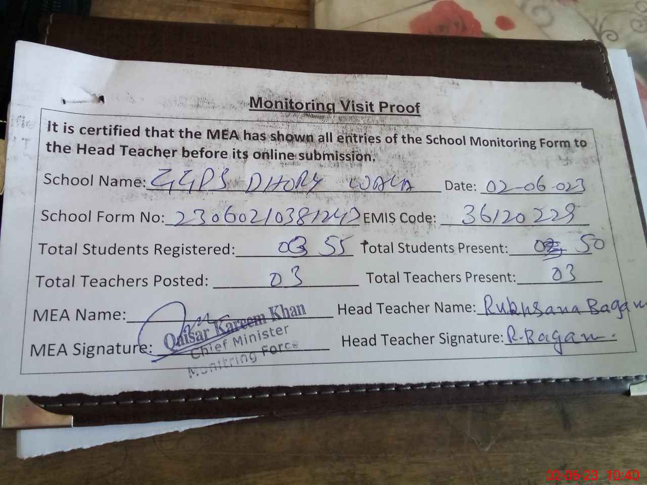 | EMIS Code: 36120229 | Name of School: GGPS DHORAY WALA NO. 2 SHUJABAD | |||
