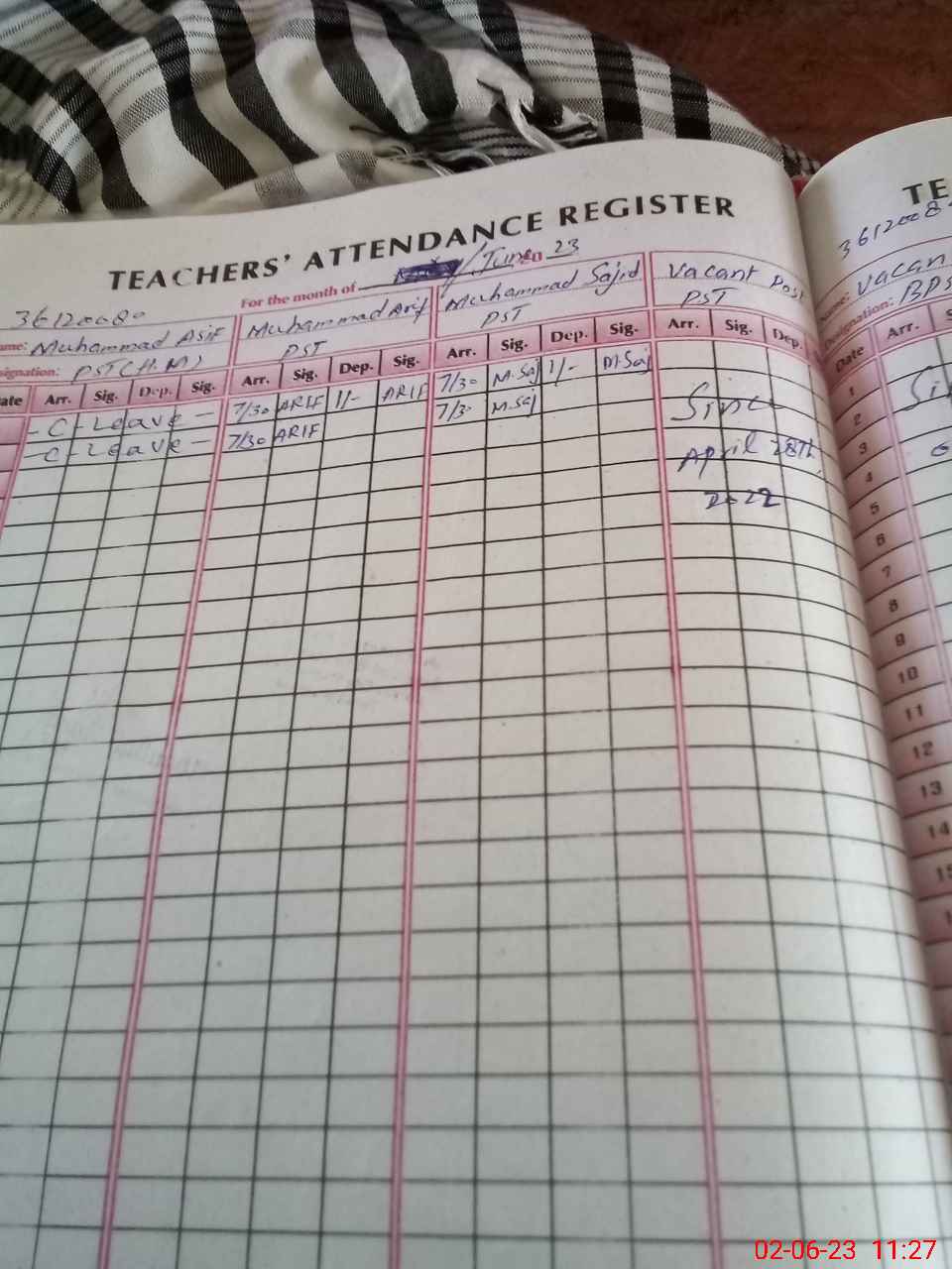 | Name: MAr**** Designation: (School Headmaster's/Headmistress's) PST Phone/Cell Number: 03**** |