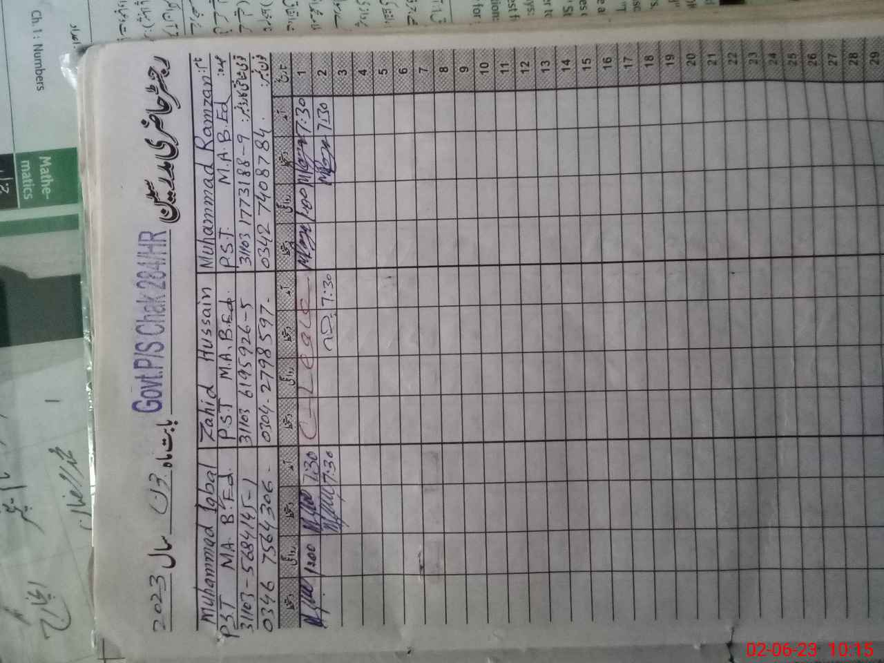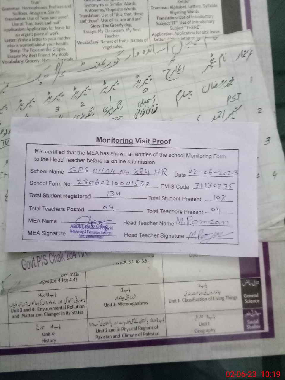 | EMIS Code: 31130235 | Name of School: GPS CHAK NO 284 HR | |||