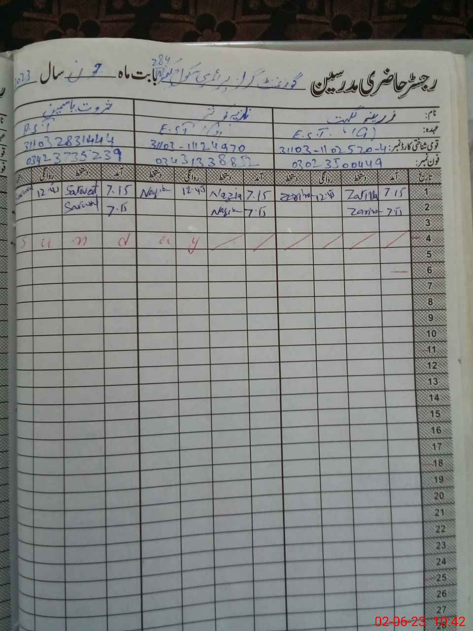 | Name: Za**** Ni**** Designation: (School Headmaster's/Headmistress's) EST Phone/Cell Number: 03**** |