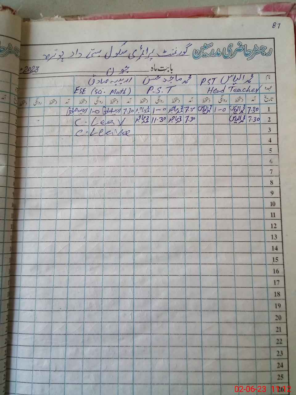 | Name: MU**** IL**** Designation: (School Headmaster's/Headmistress's) PST Phone/Cell Number: 03**** |
