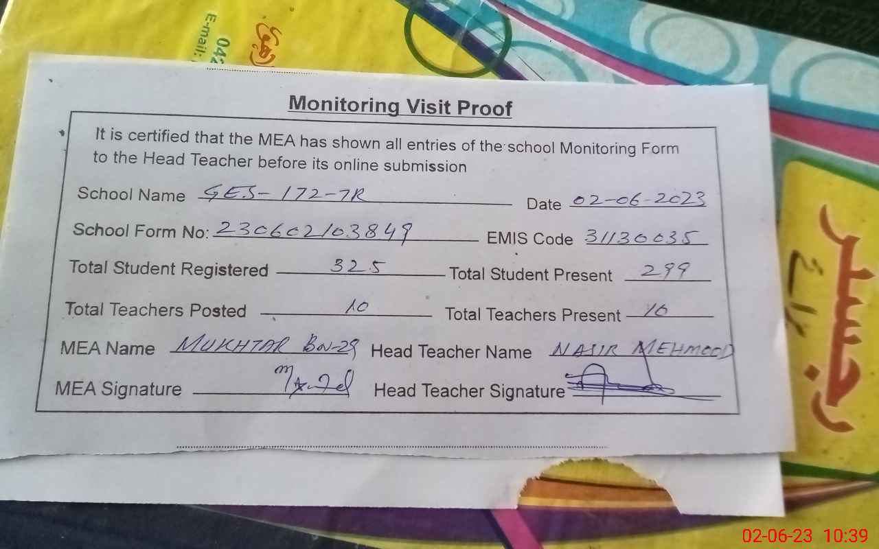 | EMIS Code: 31130035 | Name of School: GES CHAK 172/7-R | |||