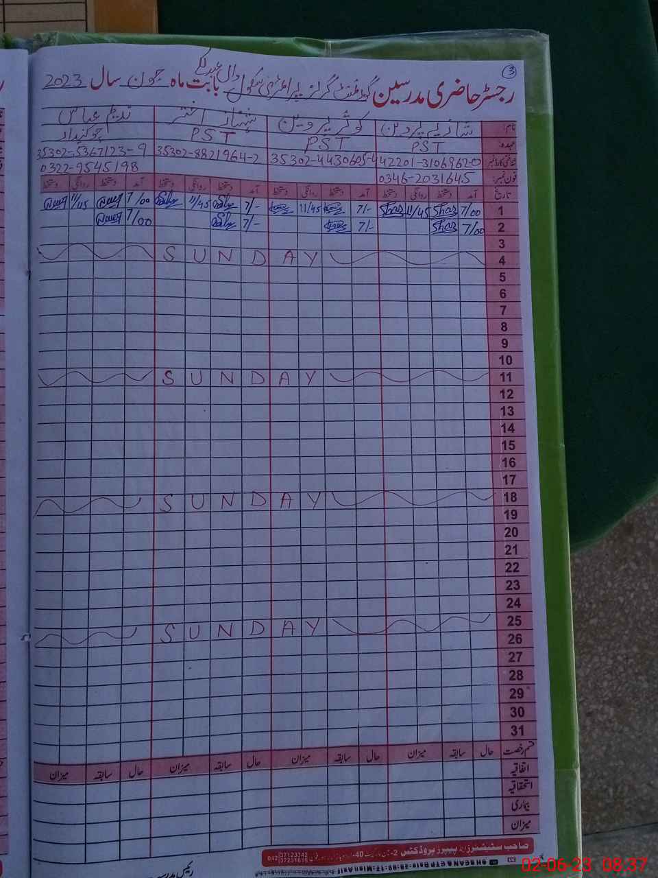 | Name: Sh**** Pe**** Designation: (School Headmaster's/Headmistress's) PST Phone/Cell Number: 03**** |