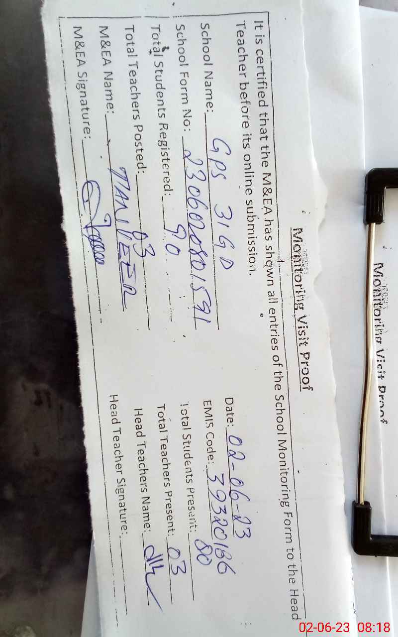 | EMIS Code: 39320186 | Name of School: GPS CHAK NO 31/G.D | |||
