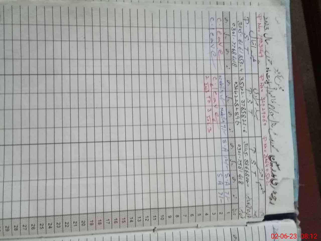 | CNIC | Full Name | Designation | R/C | Absence During Last Calender Month |
