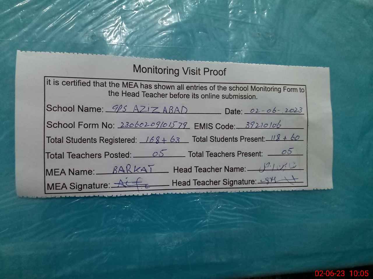 | EMIS Code: 39210106 | Name of School: GPS AZIZ ABAD BASTI SWL.ROAD PAKPATTAN | |||