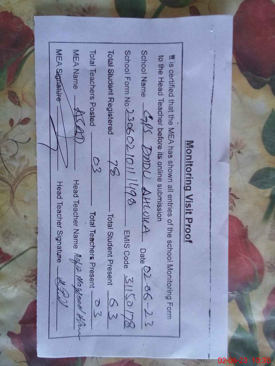 | EMIS Code: 31150178 | Name of School: GPS DADU AHLOKA | |||