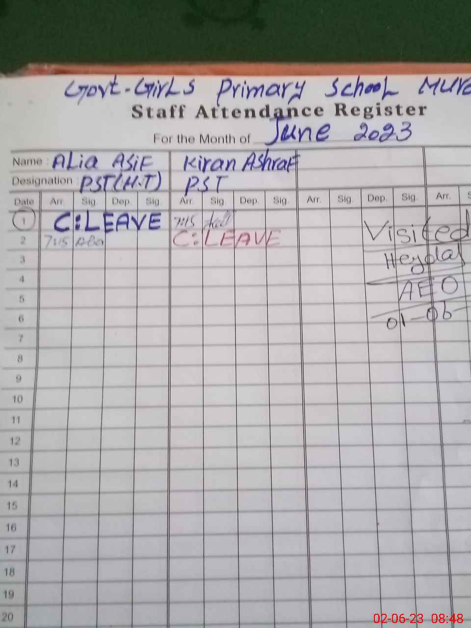 | Attendance Register | Head Teacher | MEA with School | Visit Proof |