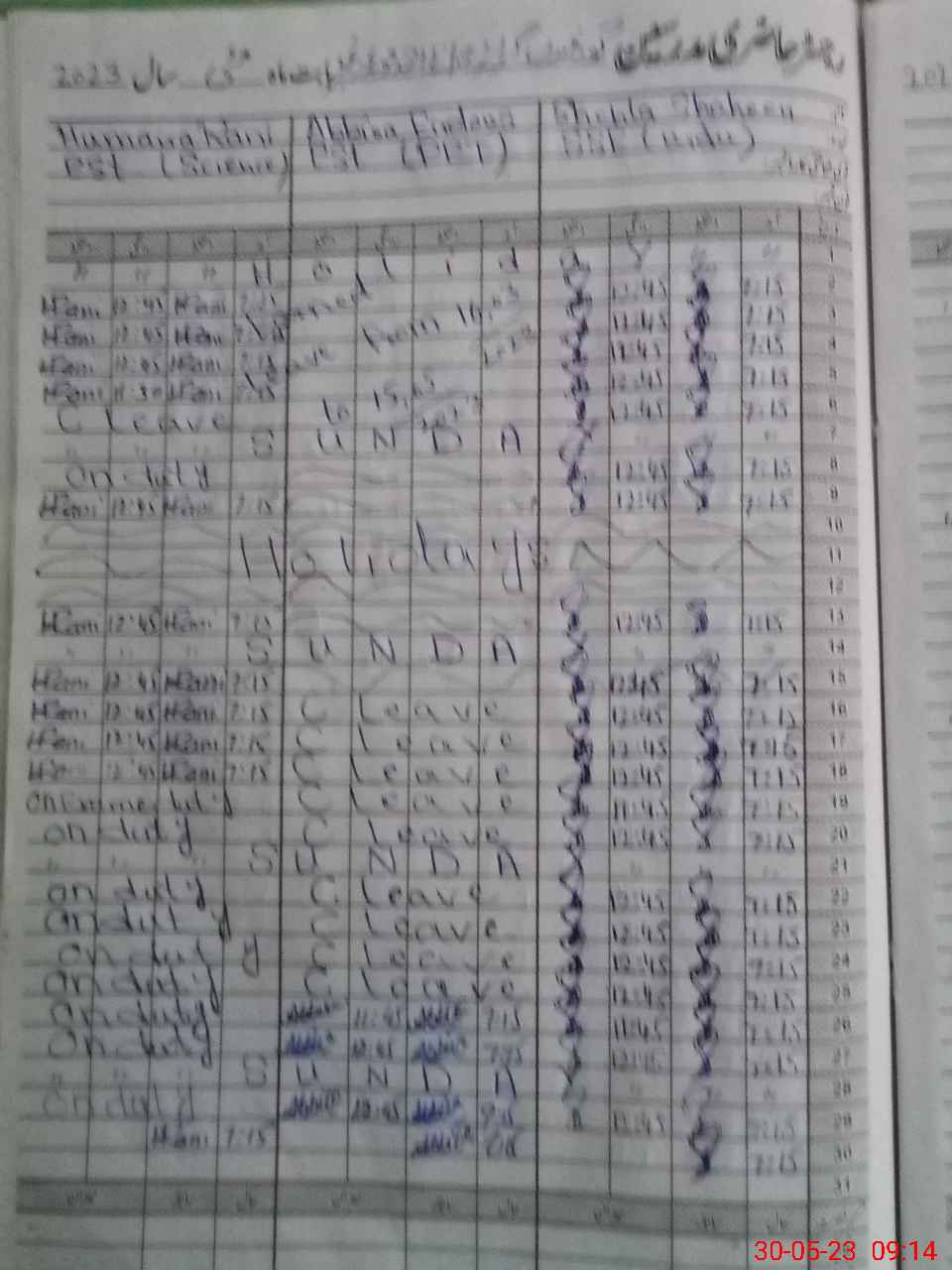 | Leave | Duty | Absent | Maternity | Medical | Ex- Pak |