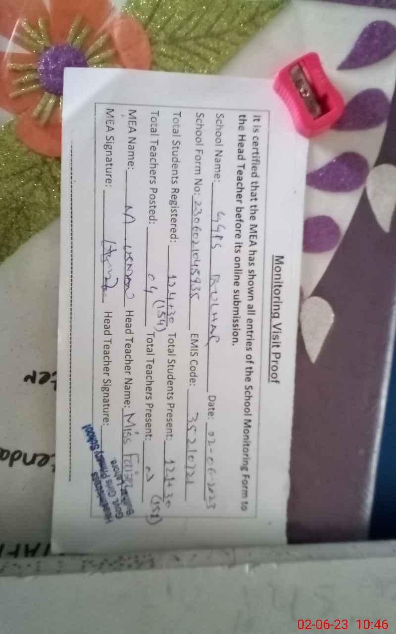 | EMIS Code: 35210721 | Name of School: GGPS BULHAR TEHSIL MODE TOWN | |||