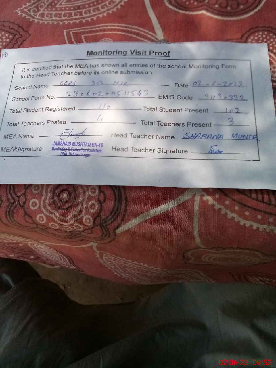 | EMIS Code: 31130332 | Name of School: GGPS CHAK NO. 303/HR | |||