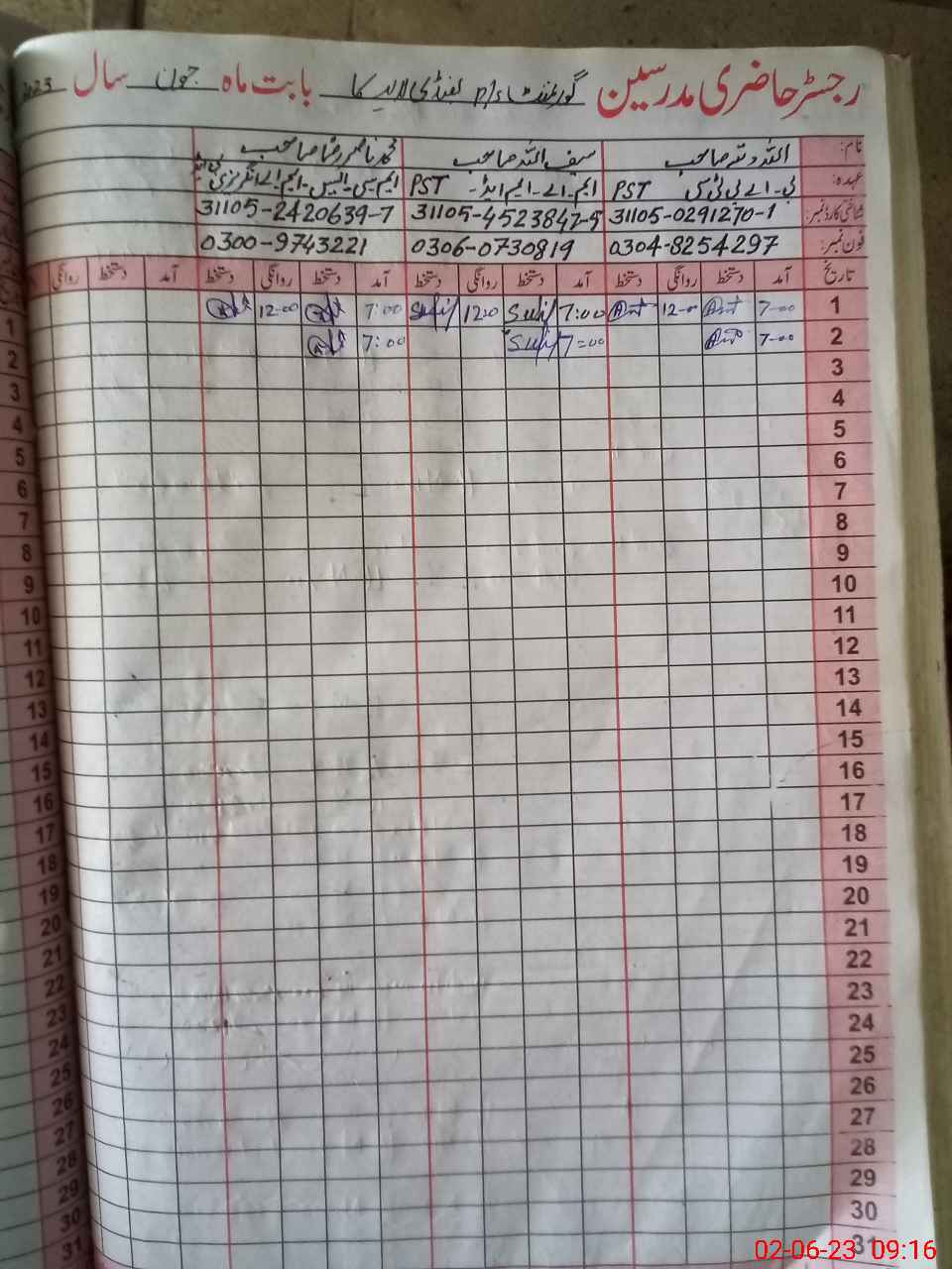 | Name: Mo**** Kh**** Designation: (School Headmaster's/Headmistress's) PST Phone/Cell Number: 03**** |
