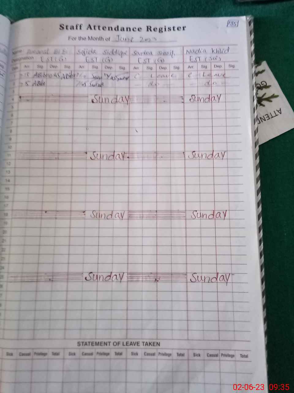 | 35**** | Na**** Kh**** | Regular | 2 | 0 | 0 | 0 | 0 | 0 | 0 | 0 | 2 | Casual | |