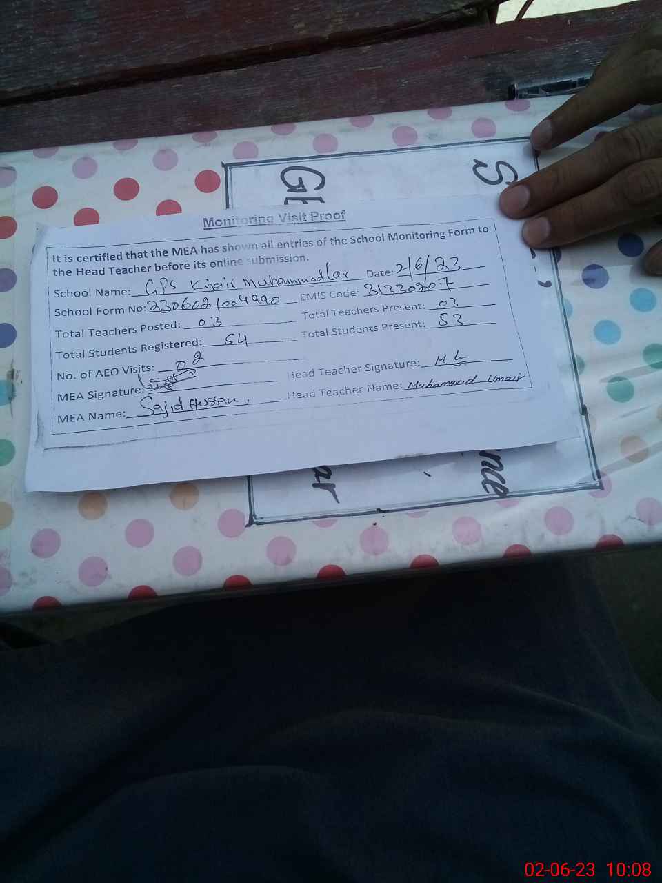 | EMIS Code: 31330207 | Name of School: GPS KHAIR MUHAMMAD LAR | |||